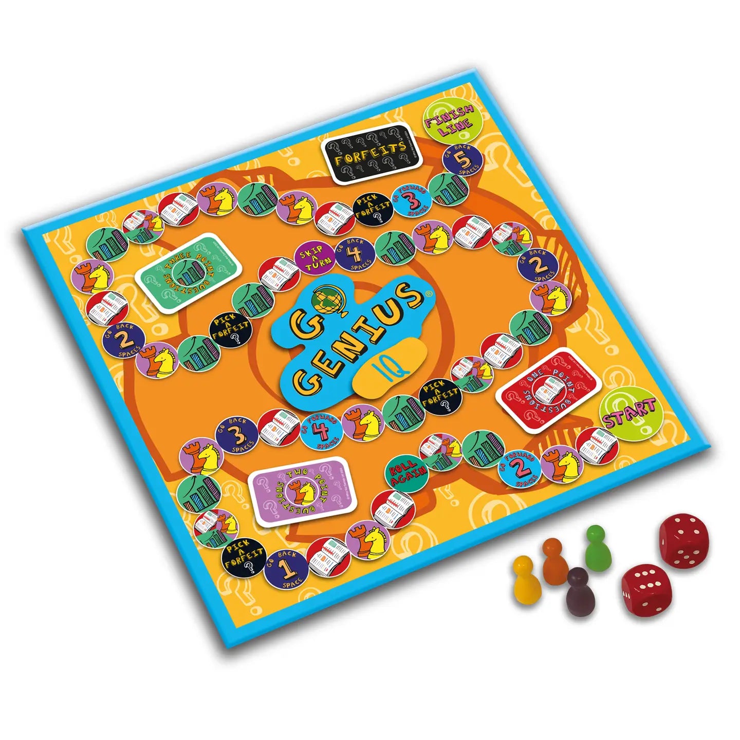 Grab your passport, fasten your seatbelt and go on the educational trip of a lifetime with this great fun board game. It supports Key Stage 1 and 2 teaching and is designed to help and improve children's verbal and non-verbal reasoning. The aim of the game is to get as many points as possible. Players travel round the board answering multiple choice problems that have to be solved through an understanding of language or by using pictures and diagrams. They need to try and avoid the spaces that tell them to miss a go, move backwards or do a forfeit! Players who gain more than 15 points can put a genius stamp (provided) into their Go Genius passport (provided for children to personalise). Not everyone is a genius but the idea is the more you play the game, the more you learn. Players can also refresh their grasp of the subject by downloading a Go Genius Learning Aid online. Once players have won the points required to earn a genius stamp for Go Genius IQ, they can then move on to another Go Genius title and fill up their passport with genius stamps! As well as being entertaining and educational, Go Genius IQ is great at getting kids unplugged and off screens. And it’s eco-friendly, made responsibly with sustainable and recyclable materials. Features: * Age 7+ * No of Players: 2-4 * Game Board with 2 dice and 4 playing pieces * 90 Question cards with inclusive multiple choice answers * 18 Forfeit cards * Motivational genius "stamps" and "Go Genius Passports" * Supports key stage 1 and 2 teaching * Helps boost children's brain power * Go Genius Learning Aid available online * Eco-friendly - made with FSC card/paper and FSC wood * 100% recyclable