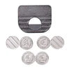 Six coins are trapped inside the wallet, interlocked in three pairs—and they won’t come out easily. Slide to discover how to take the coins out.