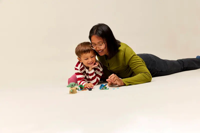 Give kids ages 4 plus an inspiring first build-and-play experience in the LEGO® Star Wars™ universe with this toy building set: Grogu’s Homestead (75443). A great small gift for preschool boys, girls and Star Wars fans, it features an easy-to-build, posable Grogu figure, a Sorgan frog, 2 mini builds plus authentic accessories. Send the Sorgan frog flying with the catapult. Recreate Star Wars: The Mandalorian™ scenes around the fireplace with a cooking pot, 2 tentacles, a marshmallow on a stickand 2 blue macaron accessories. One of the macarons can fit inside Grogu’s belly. The simple pictorial instructions in this set are ideal for children who are just learning to read. For added digital fun, the LEGO Builder app has zoom and rotate tools that let kids visualize the builds as they piece them together (perhaps with a little help from an adult or older sibling). Set contains 107 pieces.