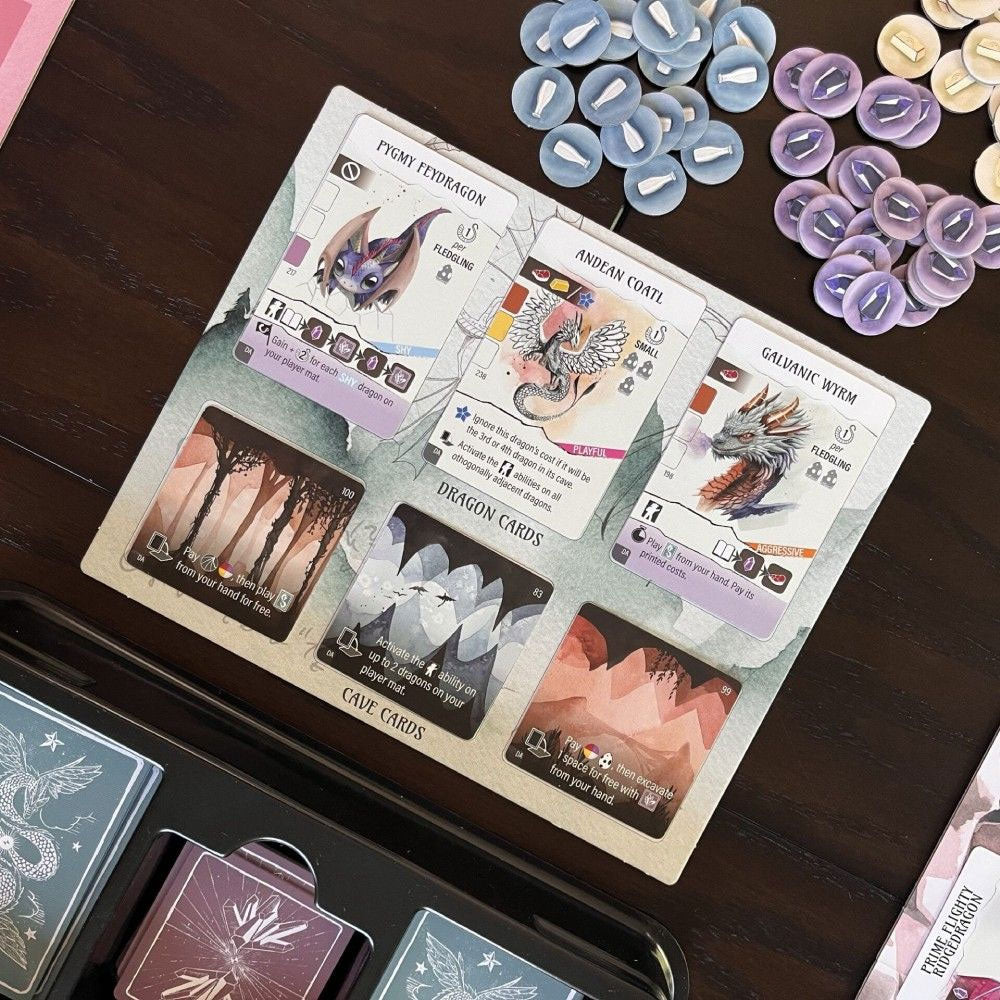 As a budding dracologist, you open an academy for fledgling dragons to achieve their full potential! The expansion to Wyrmspan adds a wide variety of new dragons and caves, objective tiles, dragon guilds, and a new round tracker that presents you with an income choice when you pass for the round. Welcome to Wyrmspan: Dragon Academy, designed by Connie Vogelmann and illustrated by Clémentine Campardou!