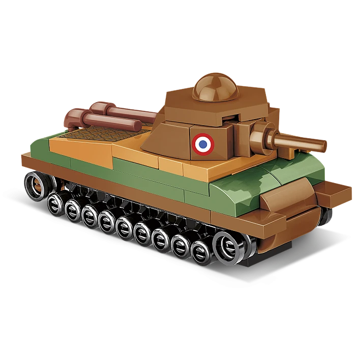 The mini model made of COBI construction blocks was designed in a scale of 1:72 and consists of 99 high-quality elements. When built the tank is 9cm long. Despite its compact size the model retains all the most important features of its historical inspiration! This vehicle cannot be confused with any other! There are prints with French markings on the sides of the turret. The ventilation grilles are also printed. The tank turret is also movable and can be rotated.