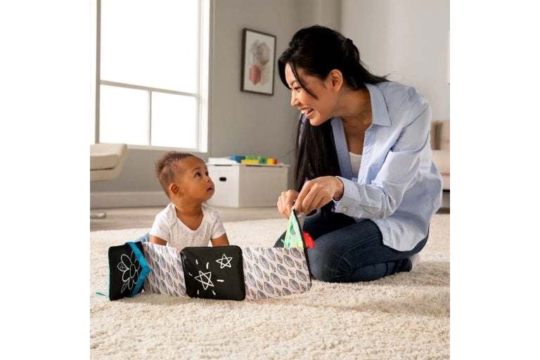 - Grow with Baby Toy: Black and white contrast pages are perfect for younger babies, while the reverse side bursts with bright colors
